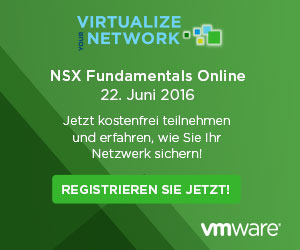 Nehmen Sie an diesem einstündigen Online-Event teil und entdecken Sie wie Sie das Betriebsmodell einer virtuellen Maschine auf das Netzwerk Ihres Rechenzentrums übertragen können und somit die Wirtschaftlichkeit von Netzwerkbetrieb und Sicherheitsprozessen optimieren. Ergreifen Sie die Chance kostenfrei und bequem von Ihrem Schreibtisch aus von unseren VWware-Experten alles Wissenswerte zu VMware NSX zu erfahren.